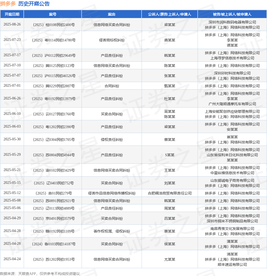 本站音问,凭证天眼查APP走漏,近日公布了一则拼多多(上海)网罗科技有限公司行为被告/被上诉东说念主的开庭公告开云体育,雅致实践如下:
