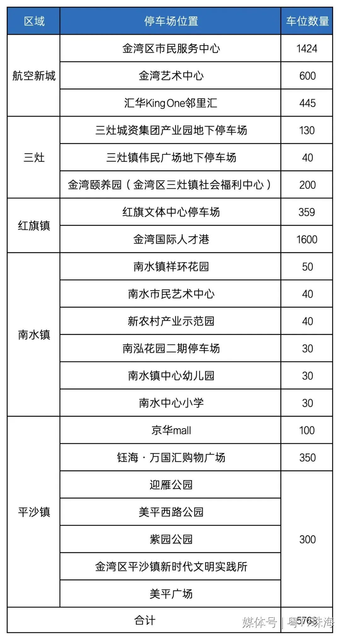 为便捷市民妥善停放车辆避险,金湾区21个泊车场超5700个泊车位供市民免费临时使用,具体如下: