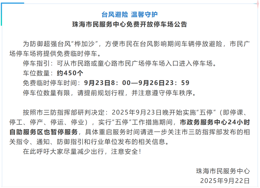●珠海环宇城、珠海富华里将于9月23日20:00起暂停贸易,规复贸易本事将另行告知。部分东谈主行收支口因防台纪律将临时关闭,请市民字据现场提醒收支。